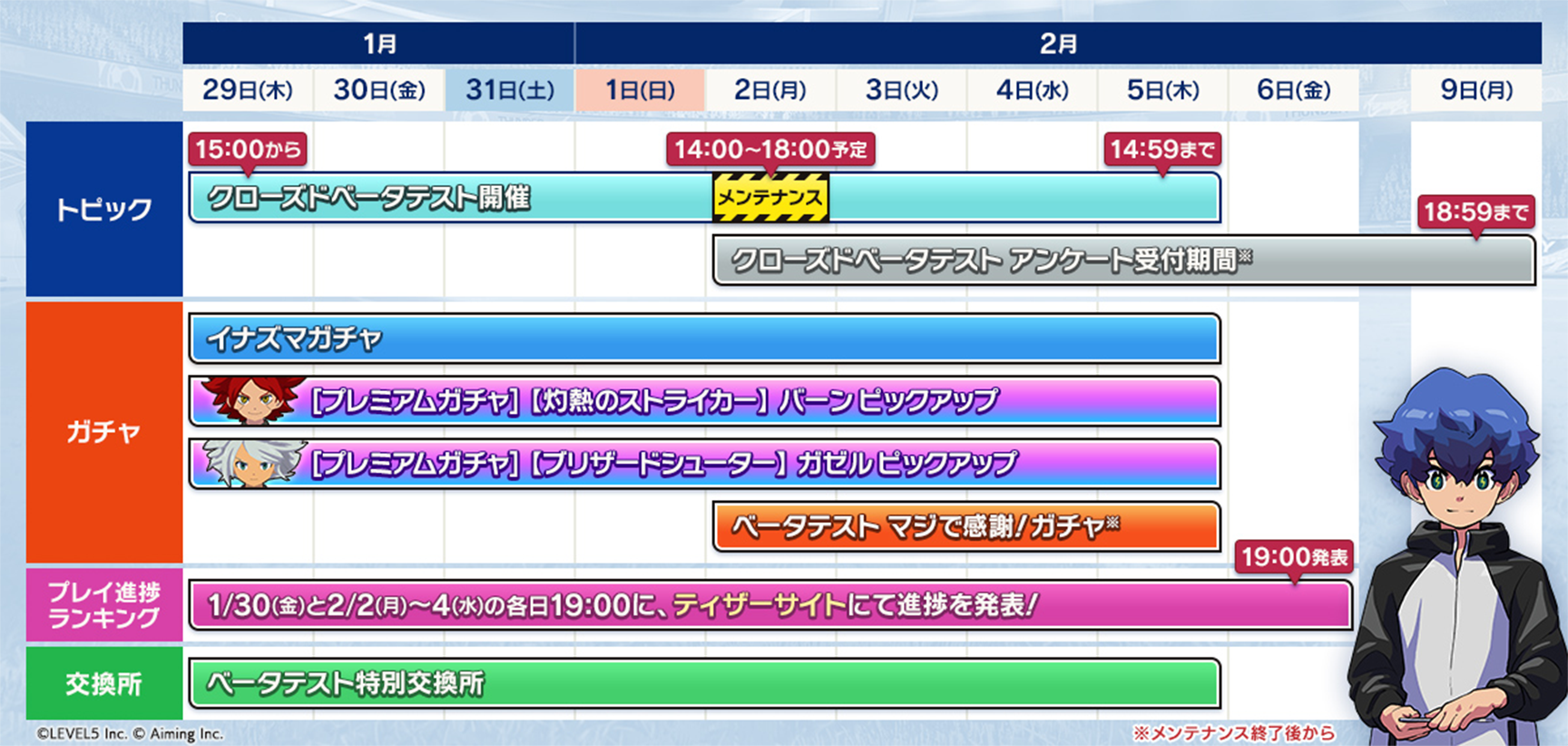 『イナズマイレブン クロス』クローズドベータテストにご参加・ご協力いただいた皆さま、誠にありがとうございました。