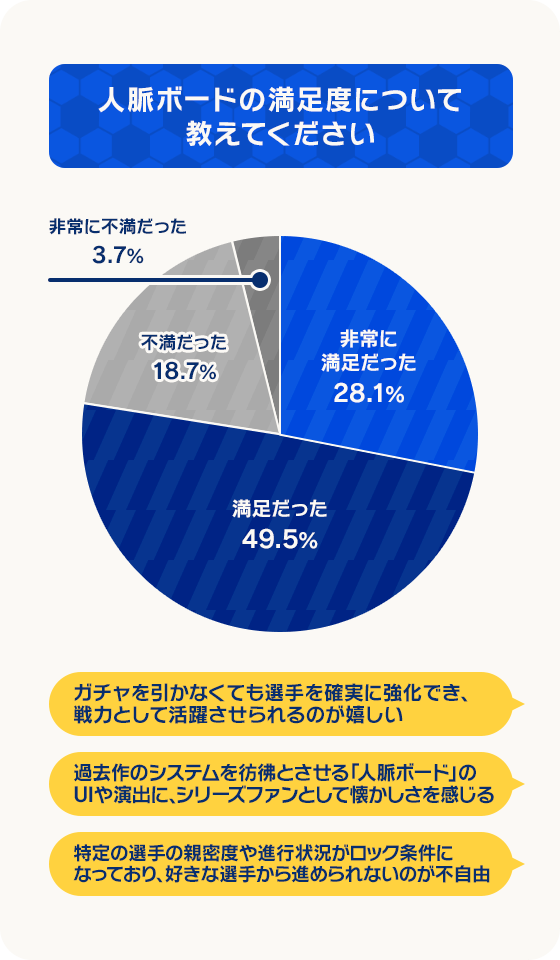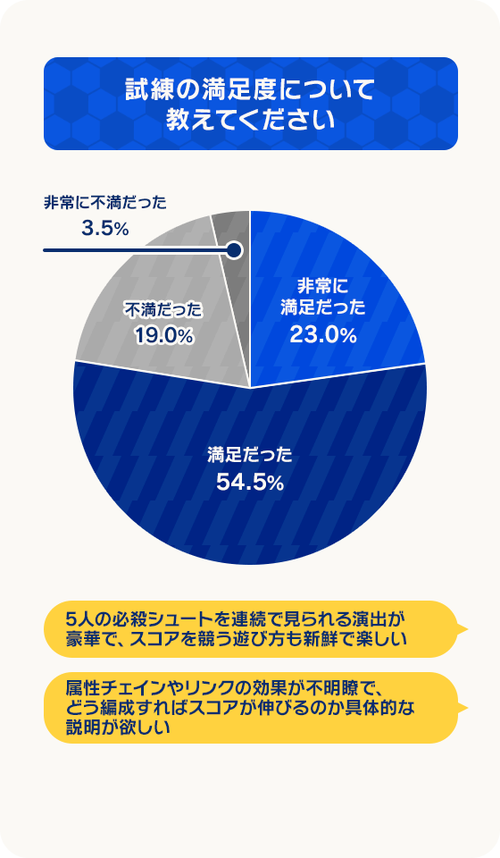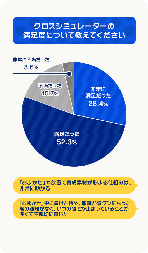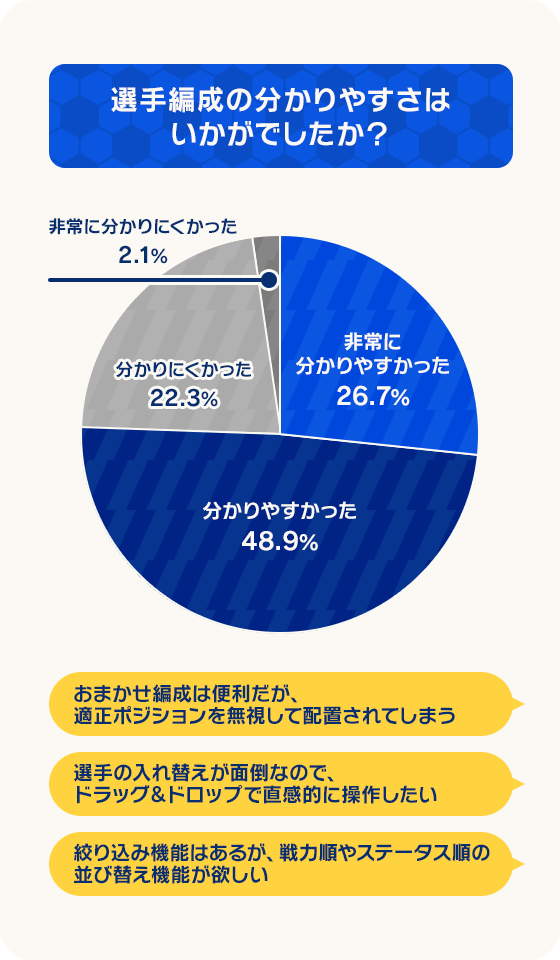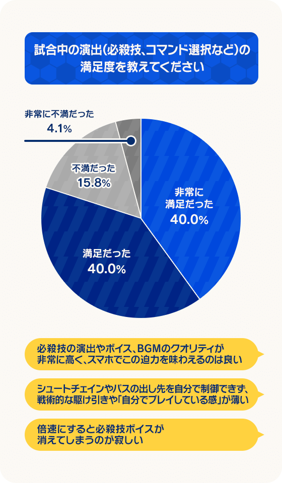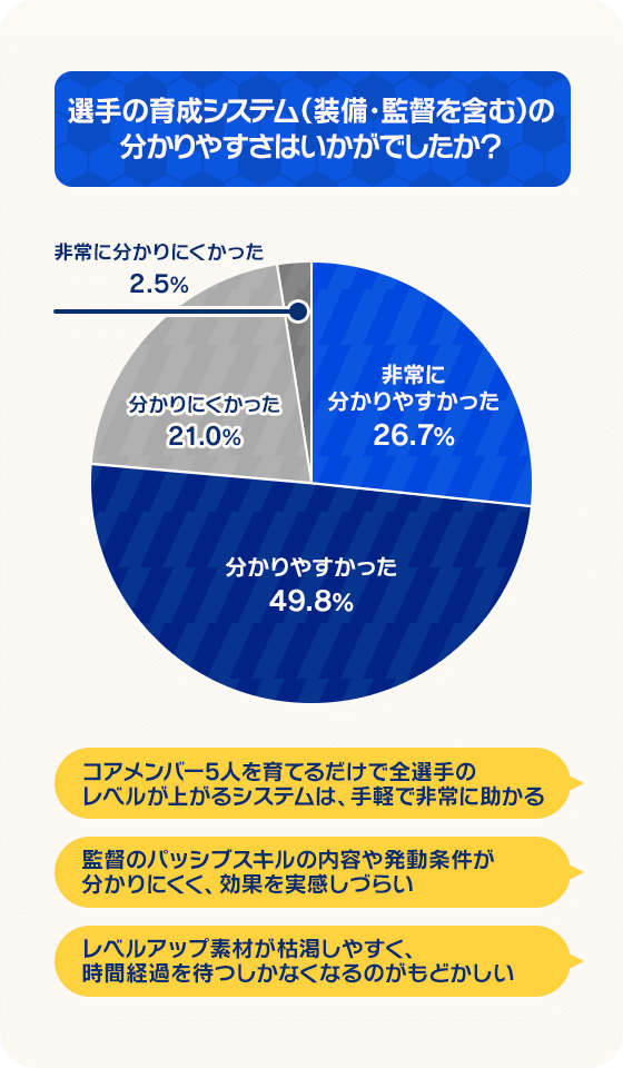一方で、試合でのAIの挙動やコンテンツの不足など、まだまだ多くの課題や改善点があることも認識しております。